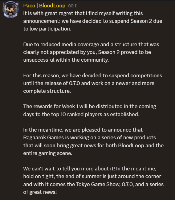 Season 2 and future competitions will be paused until version 0.7.0, as was confirmed in a statement posted by the title’s official X (formerly Twitter) account.
