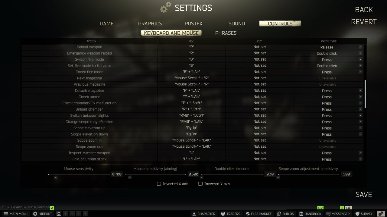 The PC control scheme reflects the complexity of mil-sim, with the settings spanning about four full pages. There are dozens of discrete actions, each bindable to multiple keys or buttons and configurable with modifiers (hold, on release, double-tap and other per-action options).